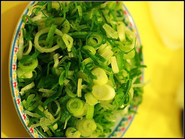 原來蔥沒有放在麵碗而是裝在另一個小盤裡面
