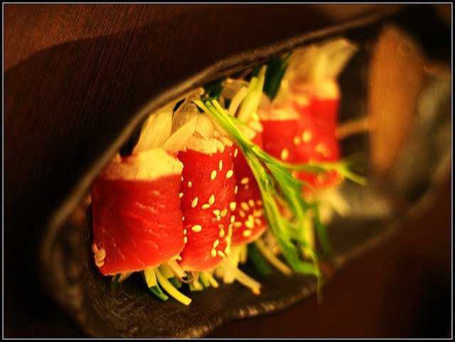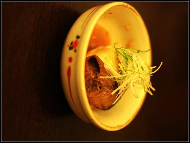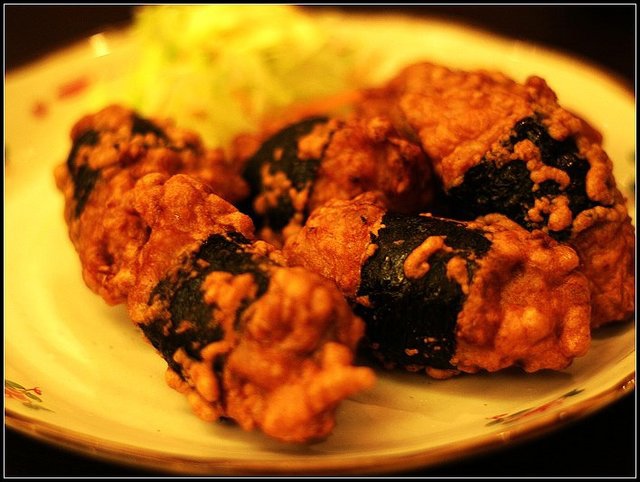 然後捲著洋蔥等蔬菜佐以紫蘇梅醬
