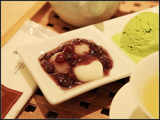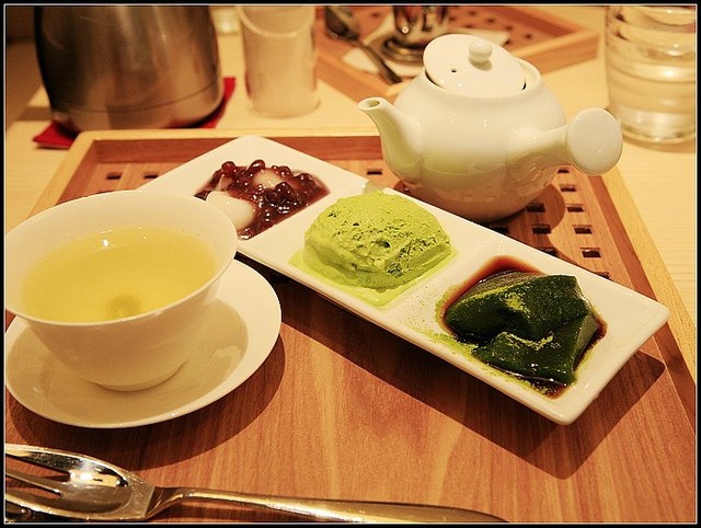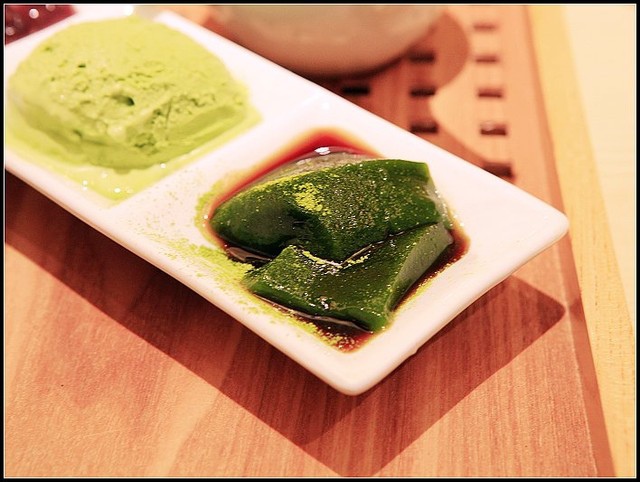 深綠色的茶凍(我不知道該怎麼稱呼耶)灑上綠茶粉
