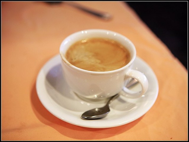 咖啡杯盤間沒有多餘的奶精跟糖包