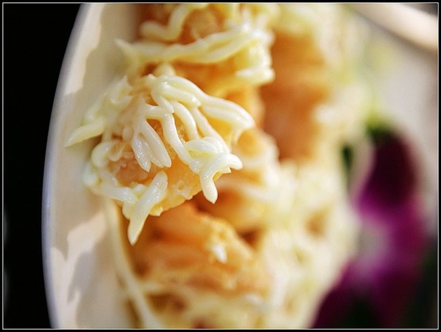 鳳梨蝦球以華麗又黏膩的姿態上桌