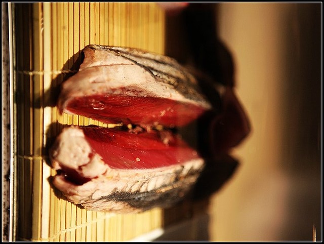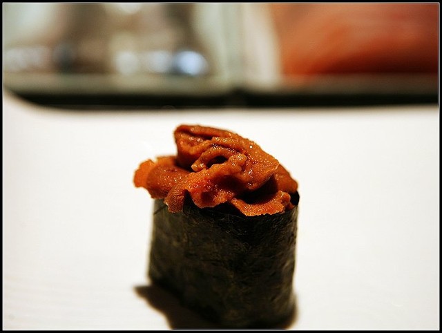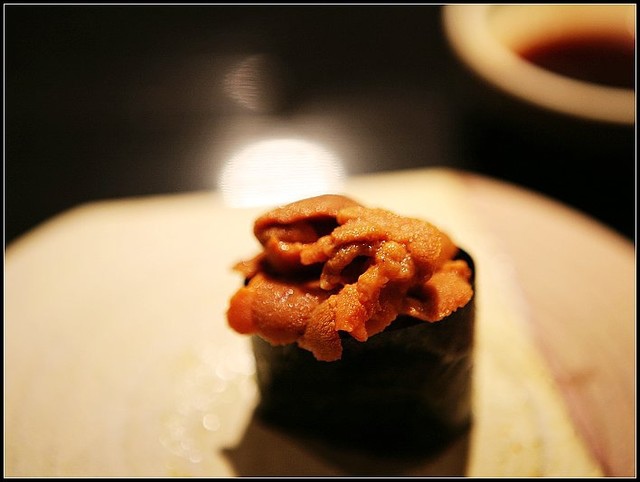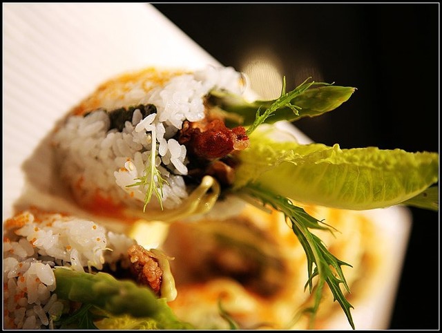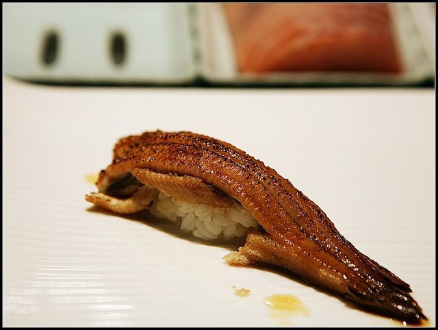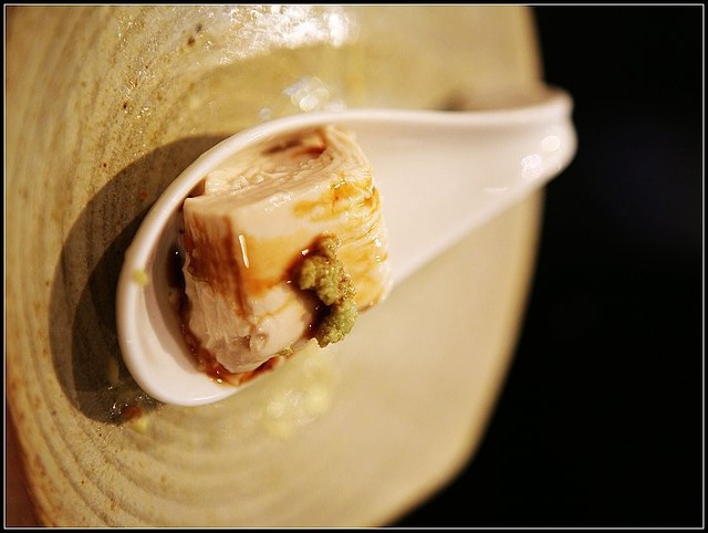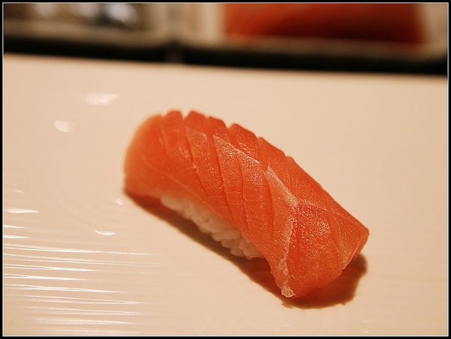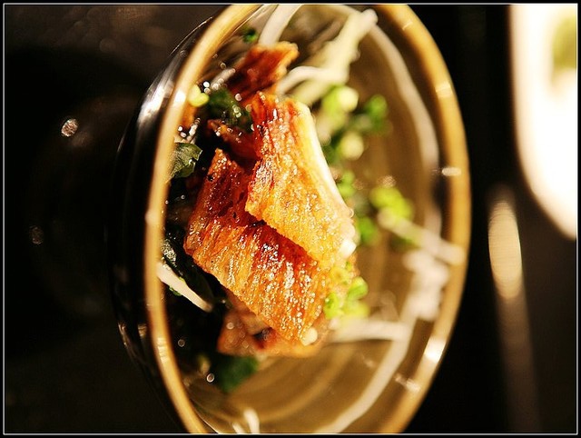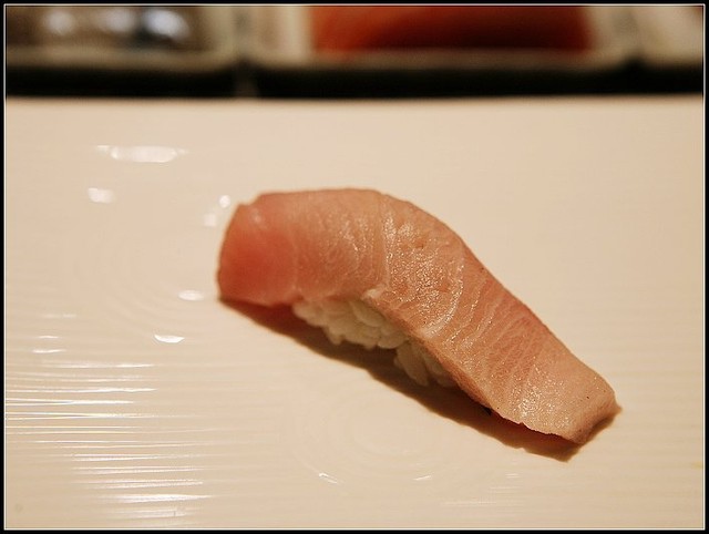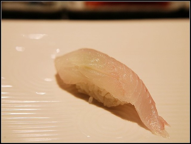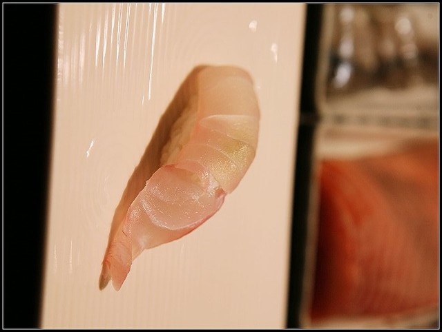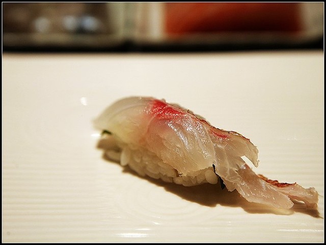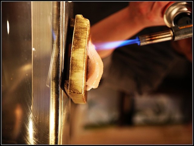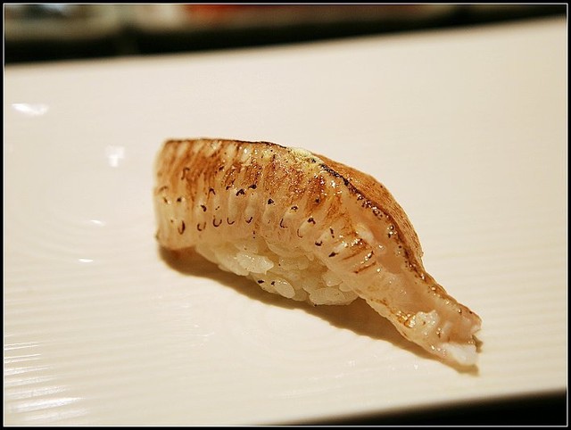 而阿噥師緊接著用噴槍微炙角鰈鰭邊肉