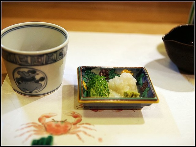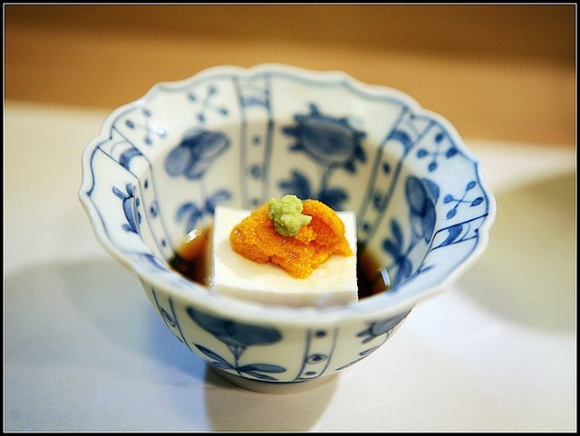 海膽胡麻豆腐上桌