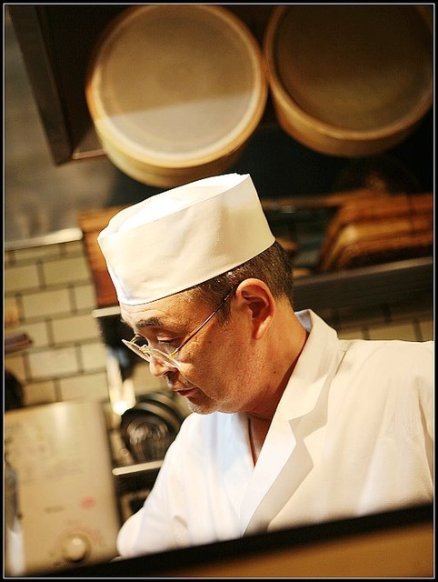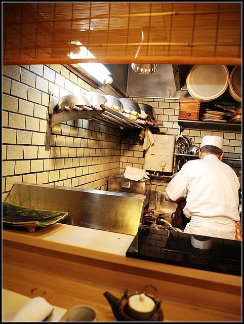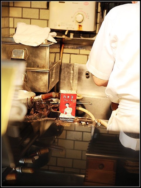 店主在料理檯內慣常的忙碌
