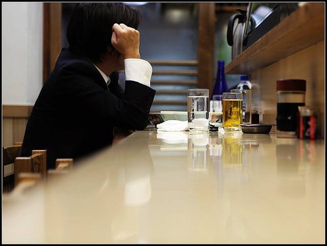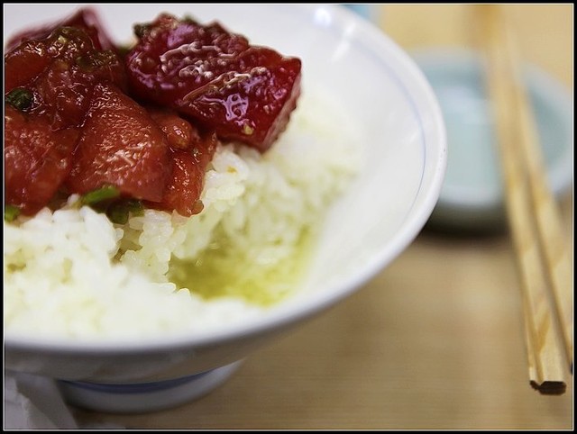 山葵的嗆辣跟隨著茶飯在喉中漾開