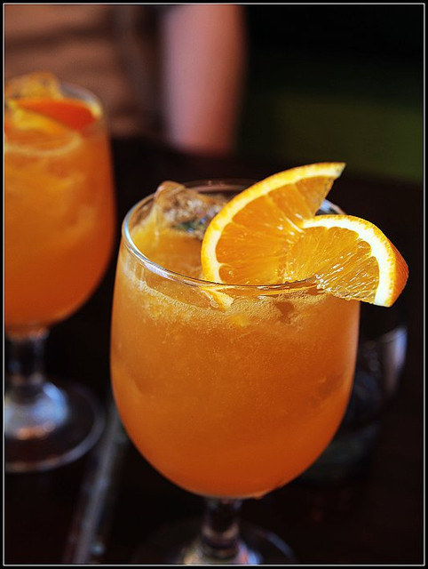 邊喝著柳橙汁加蘇打邊討論午餐的去處