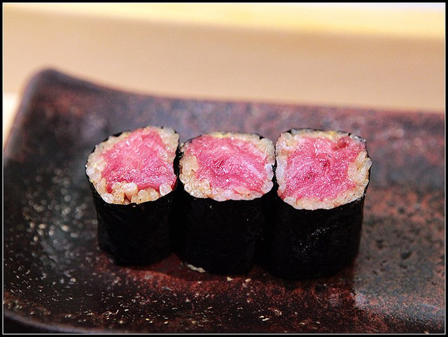 但我們還意猶未竟的點了醋漬秋刀、鮪魚卷壽司以及金目鯛魚腹